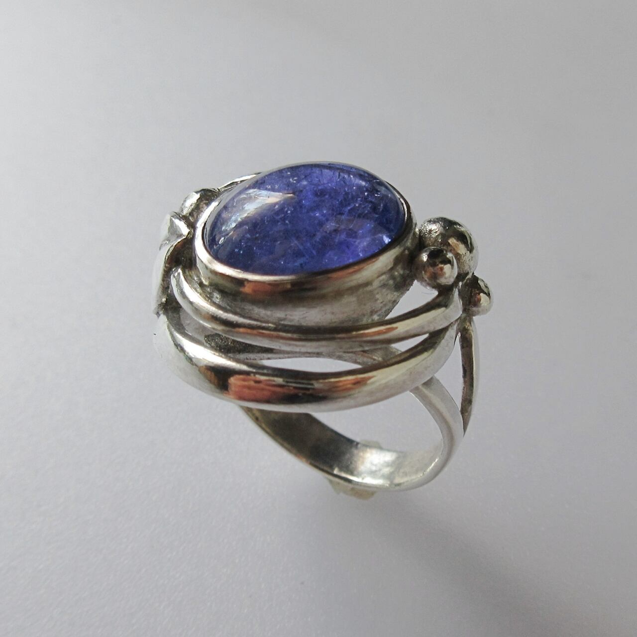 深い青がほんのりとした赤とまじりあう、その境目のような色の石です。