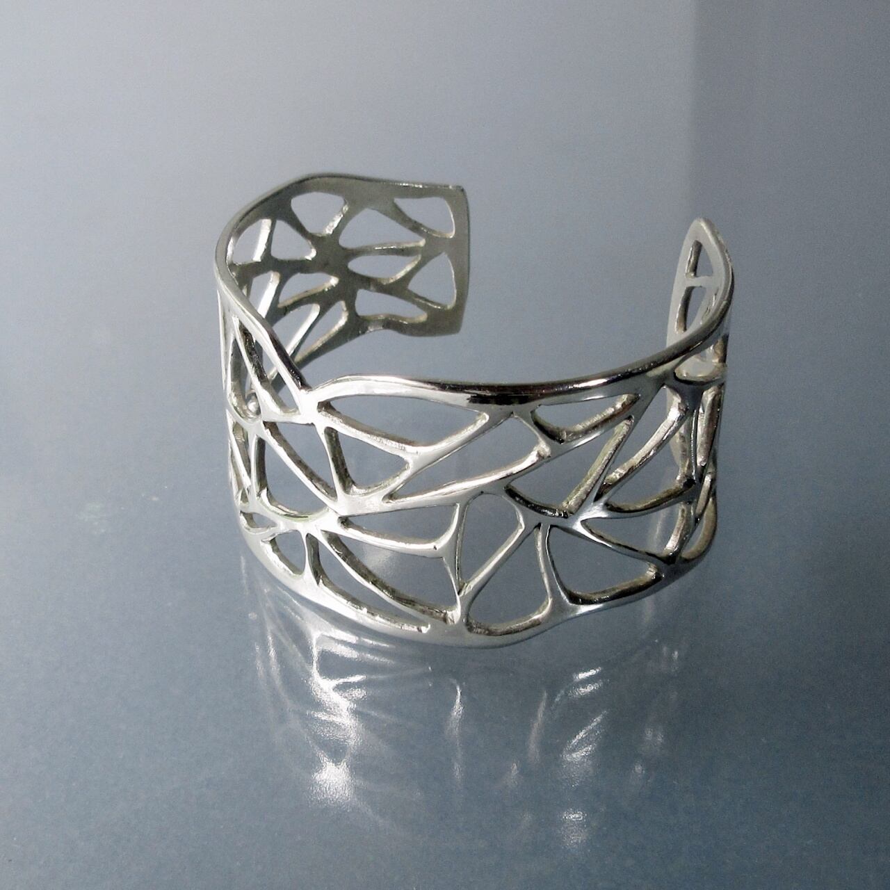透かし模様のシルバー製ハーフバングルです。
