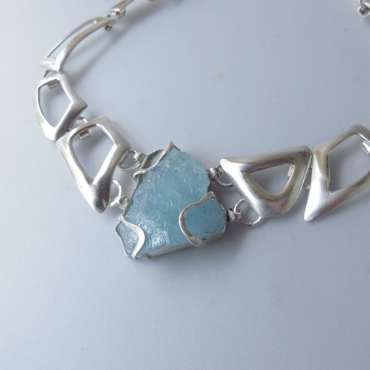 ごつごつした形が魅力的なアクアマリンの原石を使った大ぶりなシルバーチョーカーです。