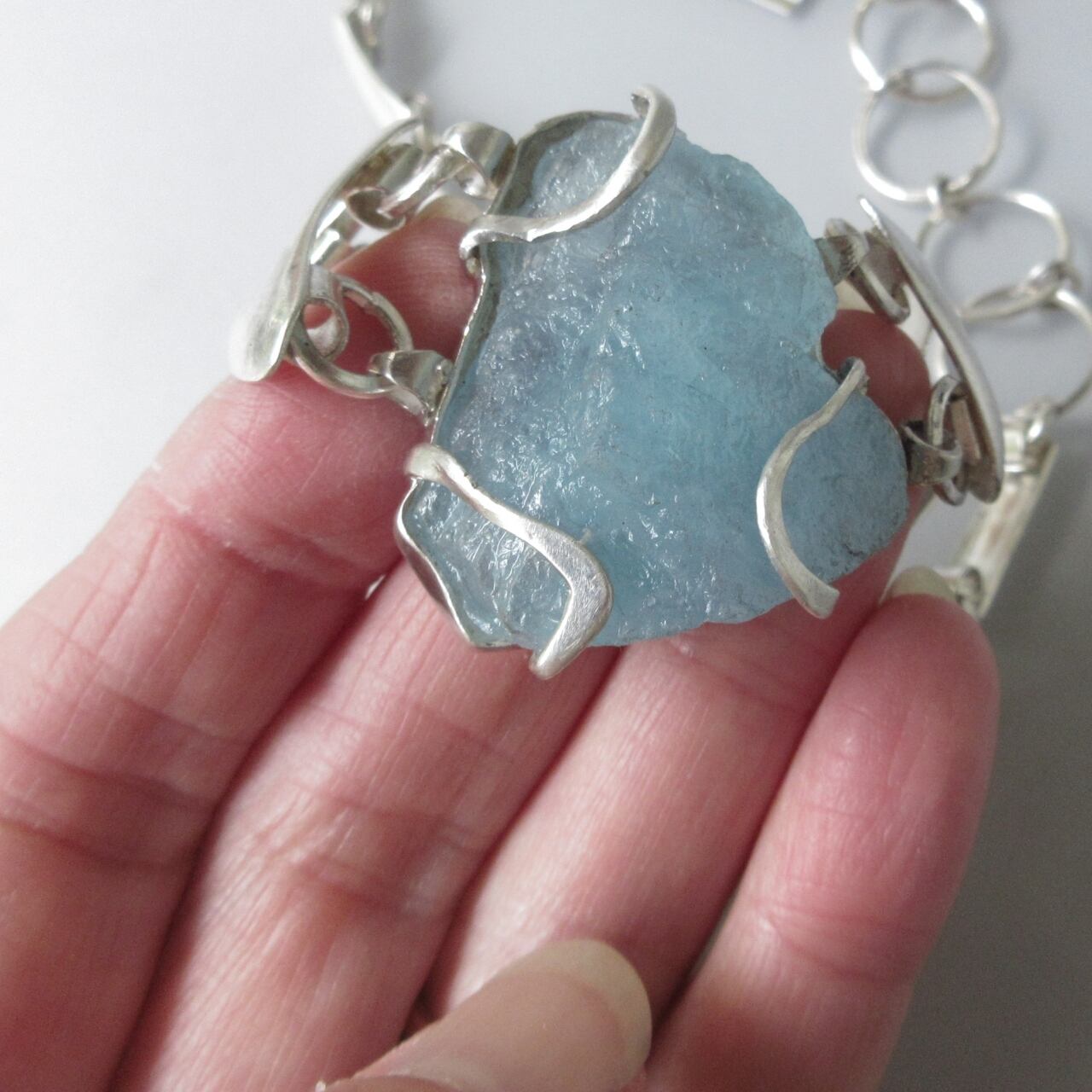 アクアマリン原石の大ぶりなシルバーチョーカー