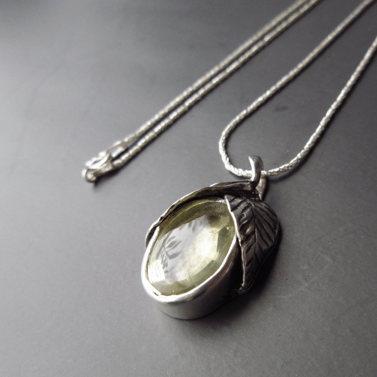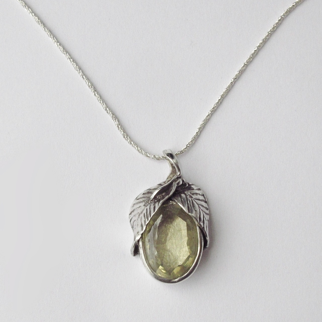 淡いレモン色のクォーツを使ったシルバー製のペンダントです。