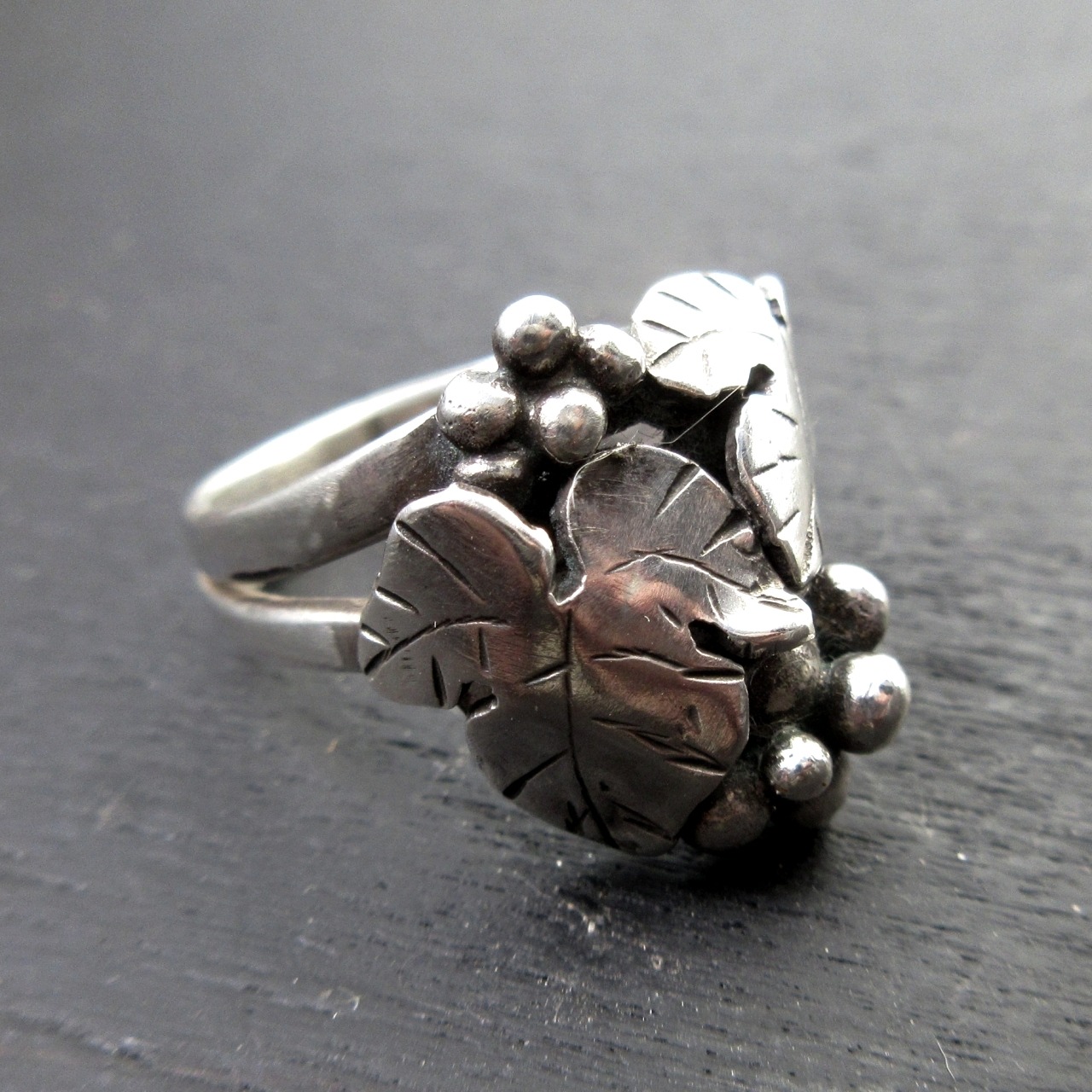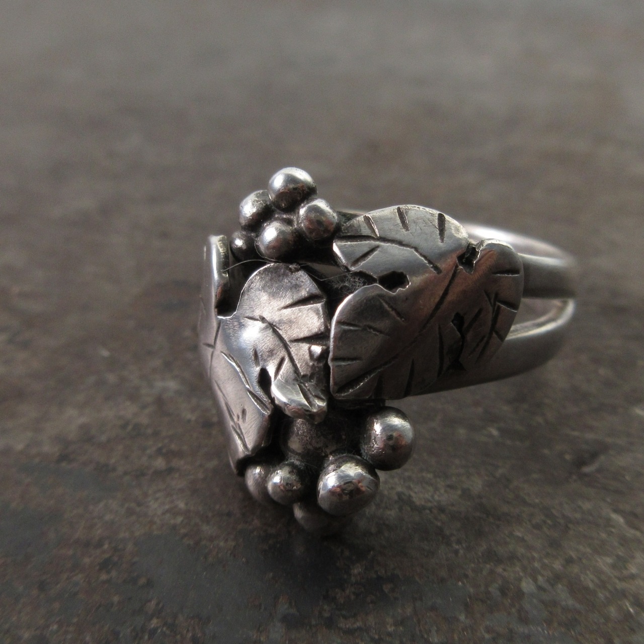 燻し銀でレトロな雰囲気に仕上げた葡萄のシルバーリングです。