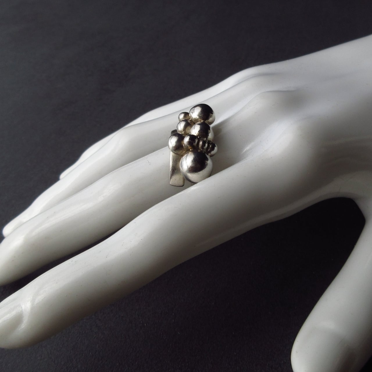 このリングはシルバー液につけずにクロスで磨いてみてください。