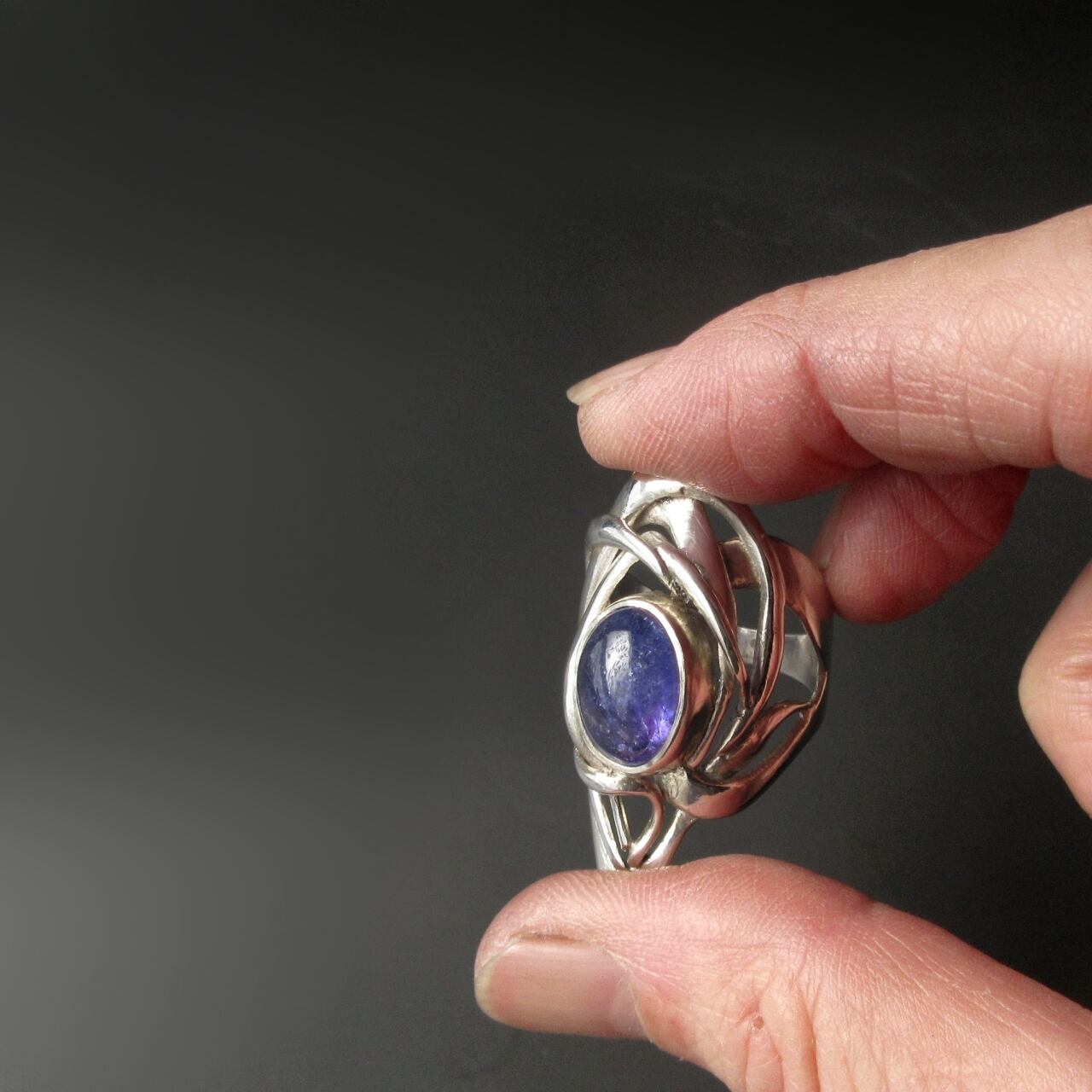 しかもタンザナイトには多色性という特徴があり見る角度によって色が変わります。