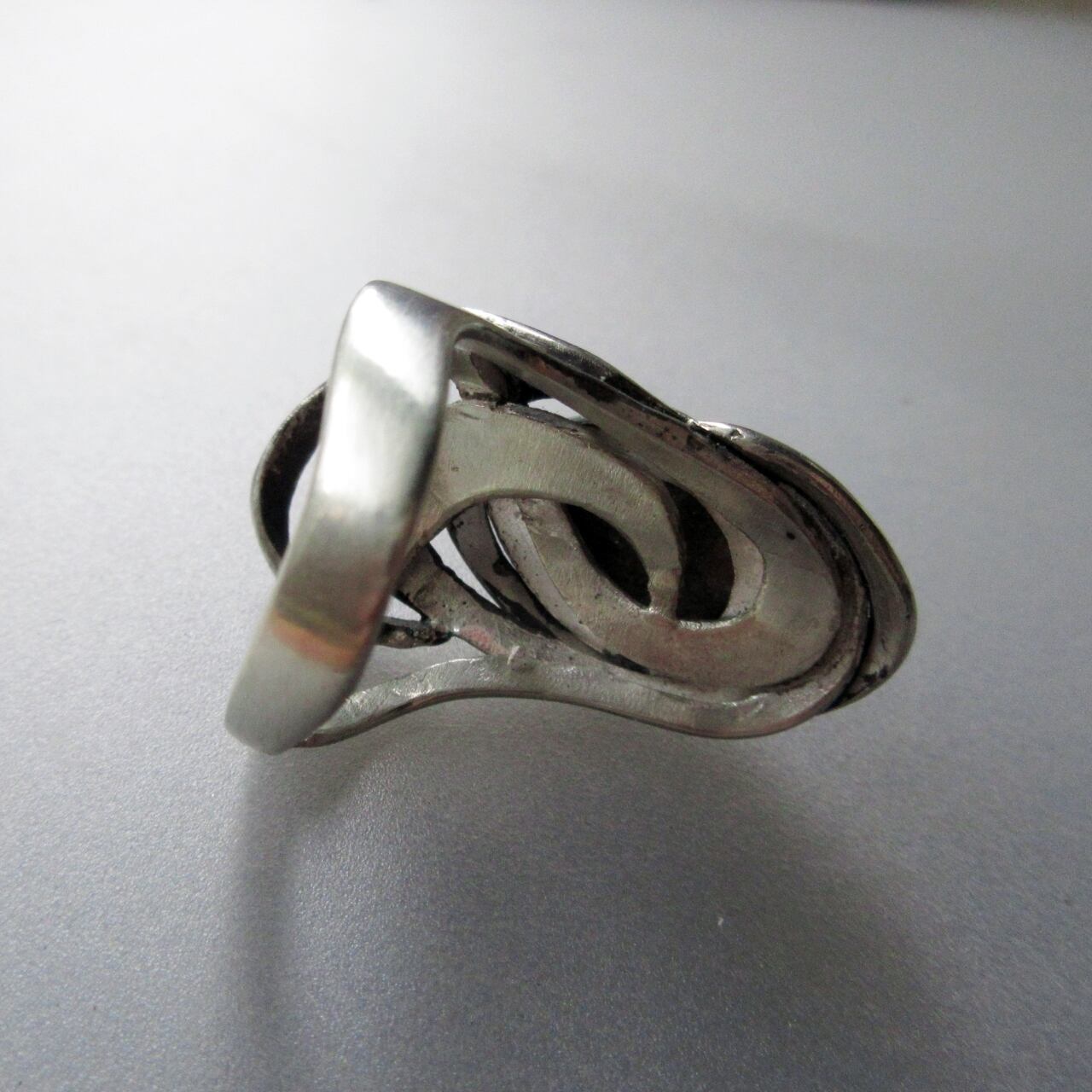 銀色が浮かぶ天然石・シルバーオブシディアンを使ったシルバーリングです。