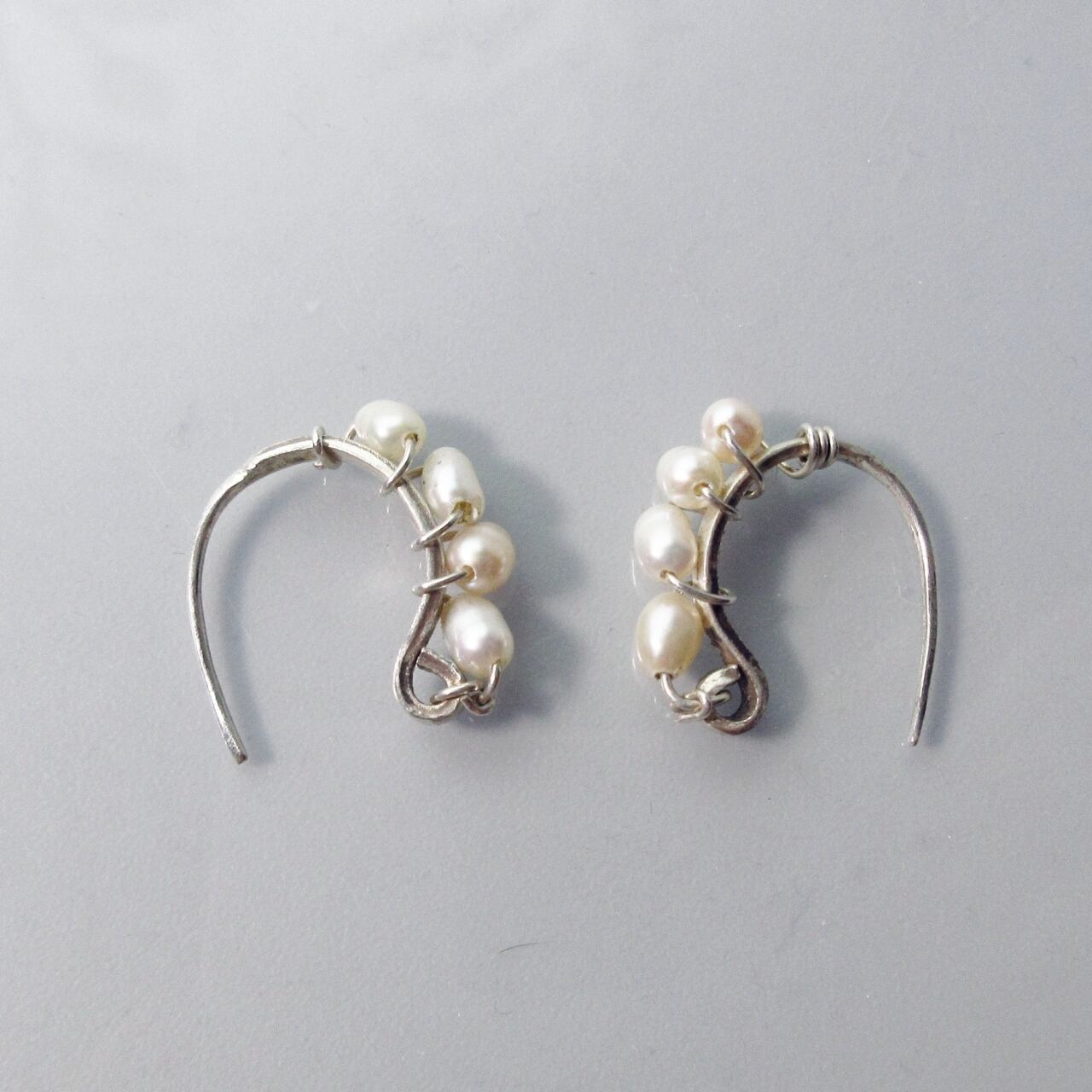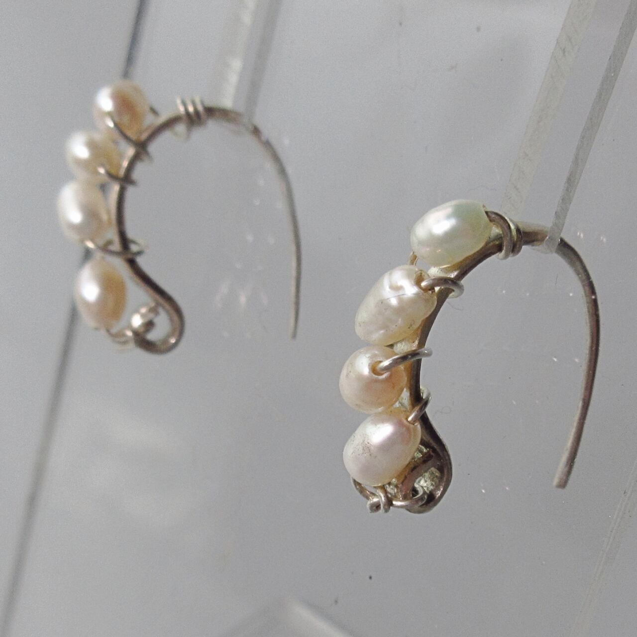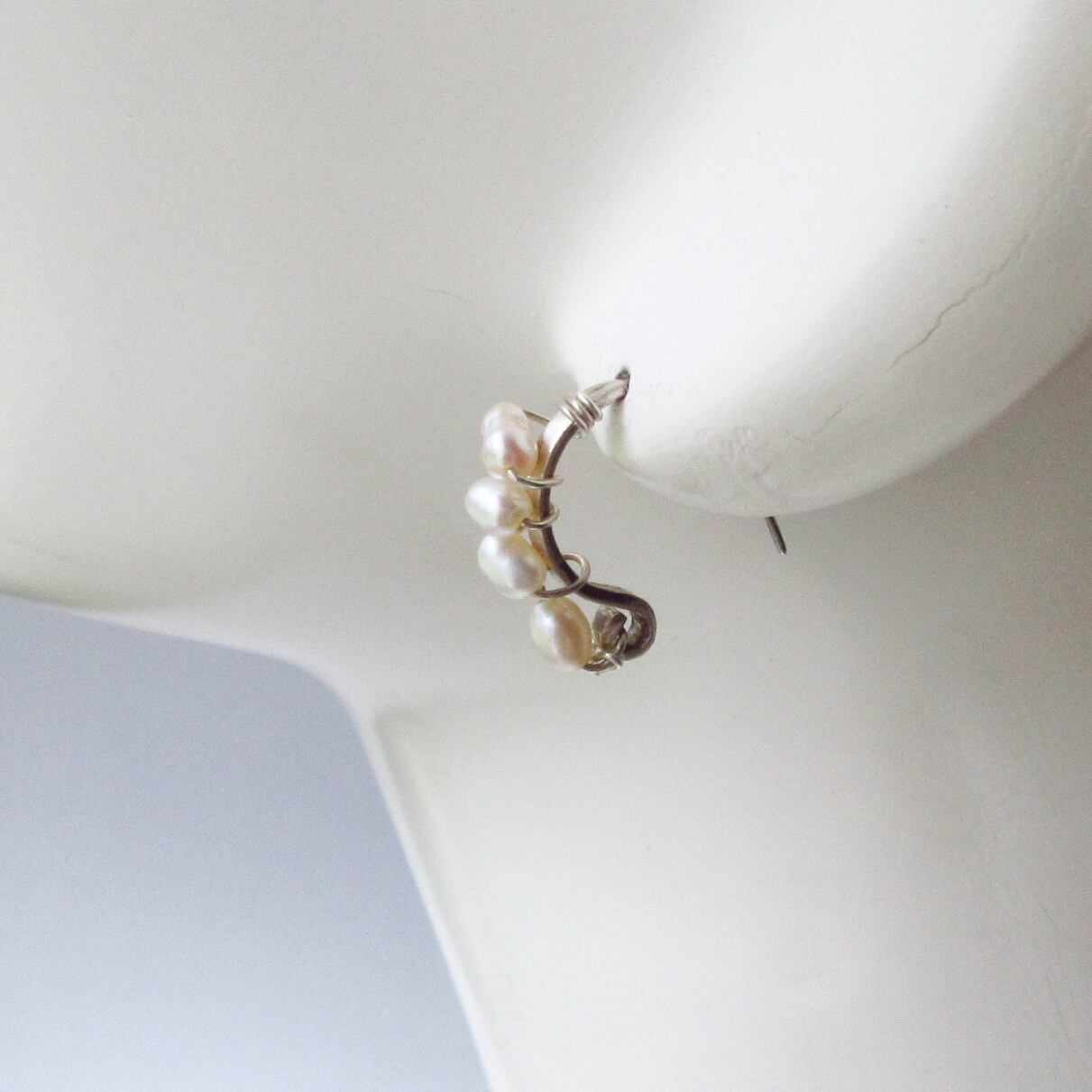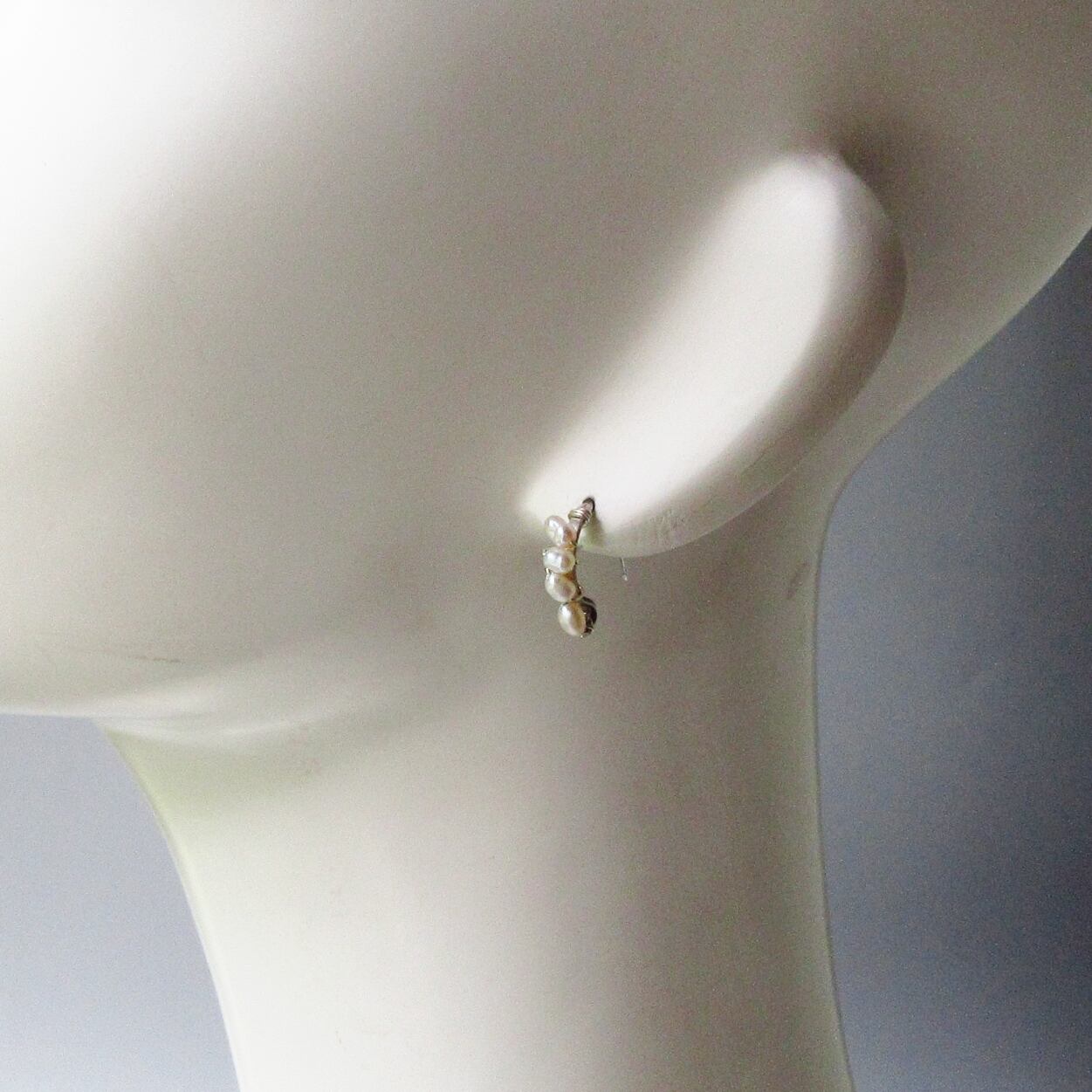 小さなパールを銀の線で繋いだコンパクトサイズのピアスです。