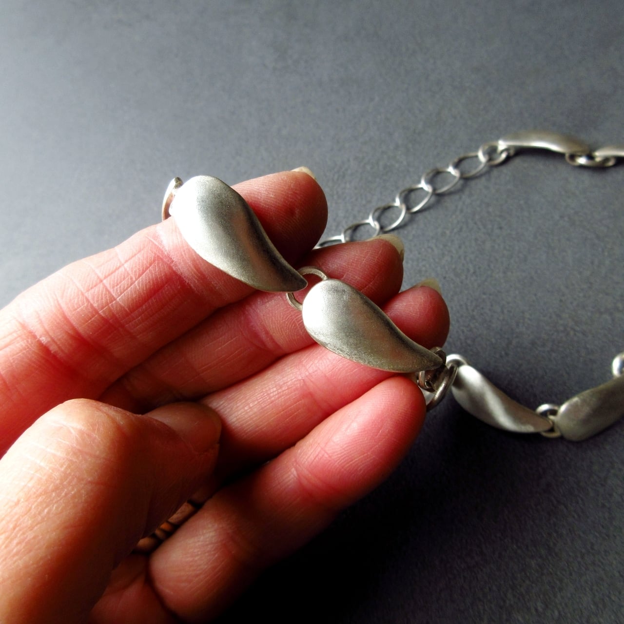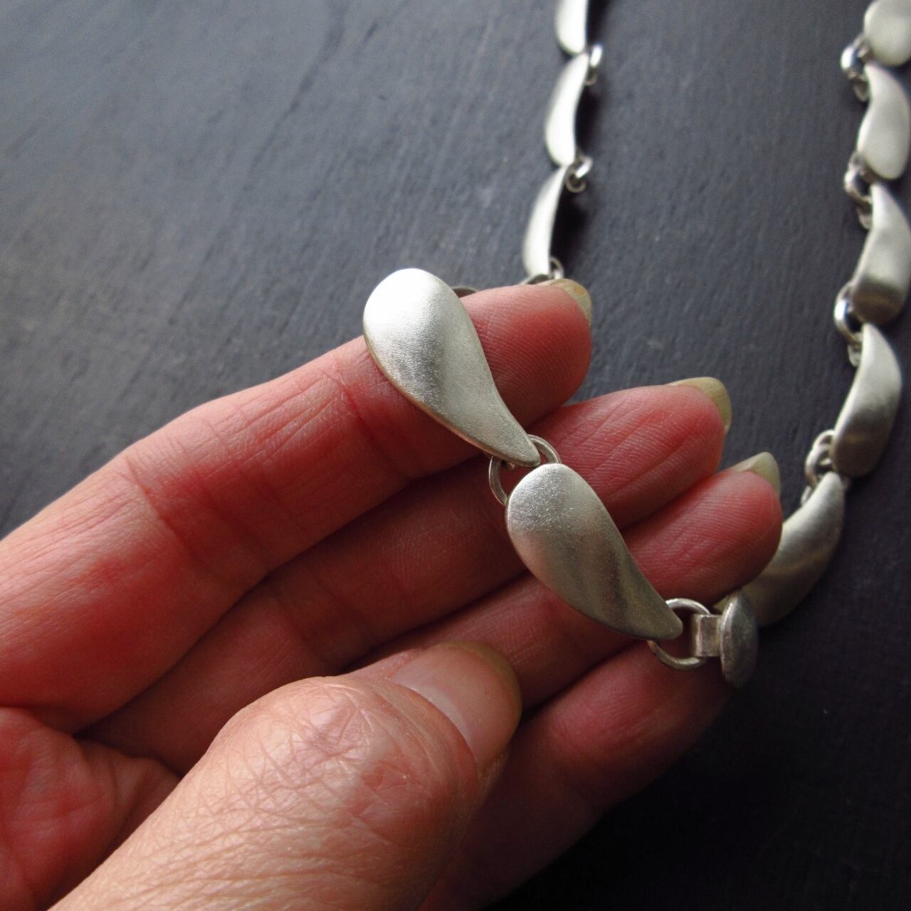 雫型の銀を連ねてとても落ち着いた雰囲気のシルバーチョーカーにしました。