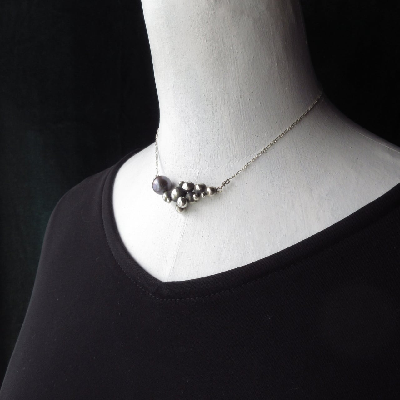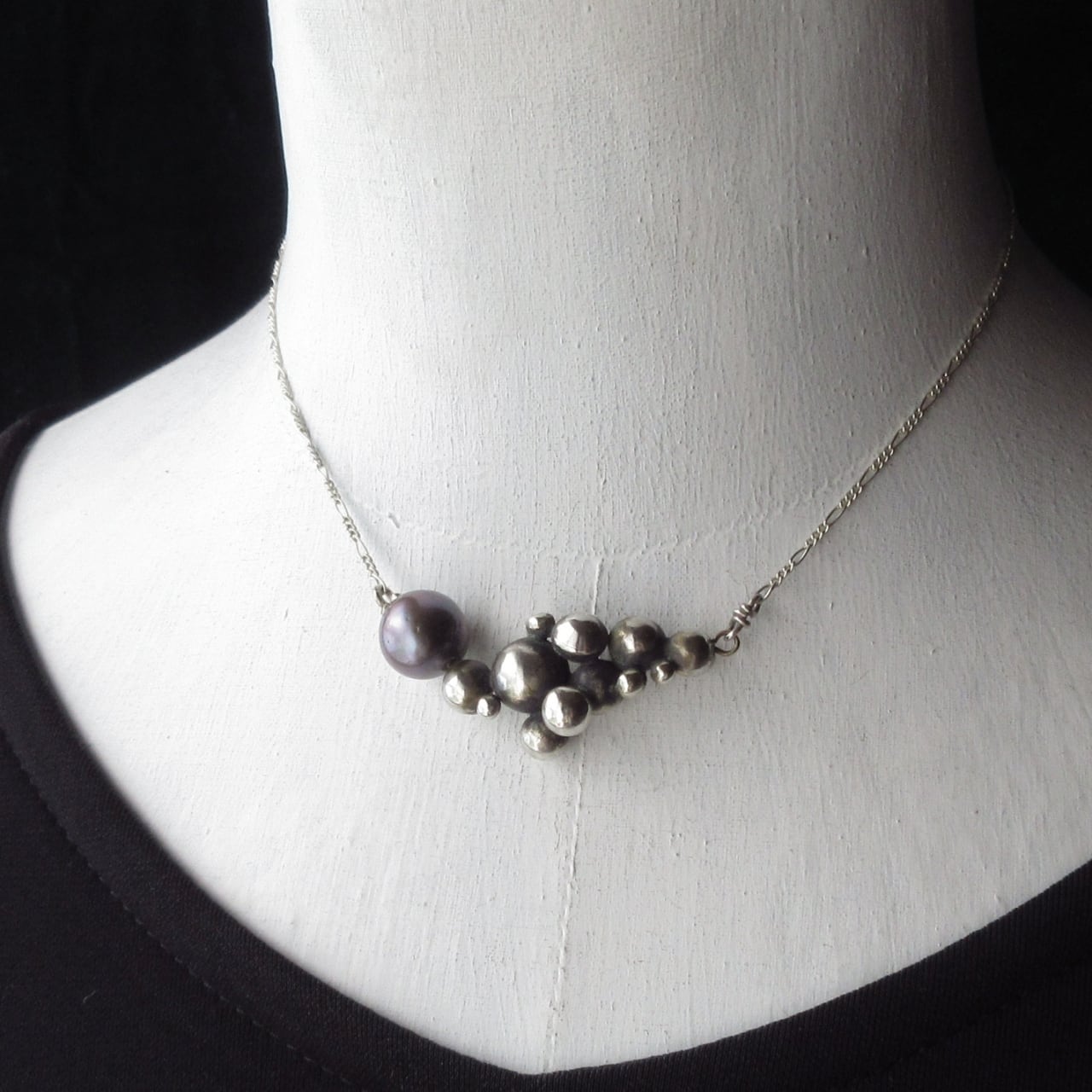 クラシックモダンな淡水パールのシルバーネックレス
