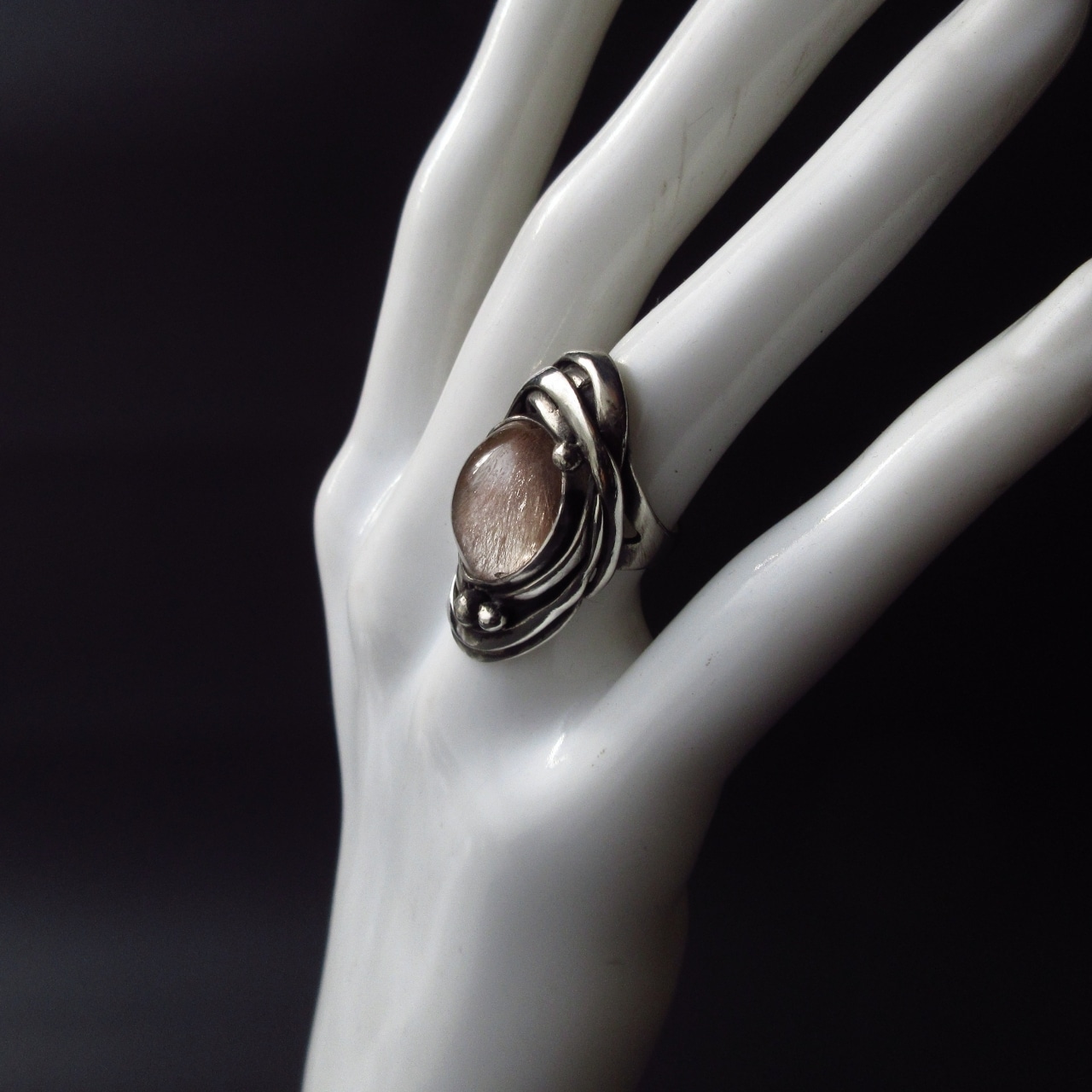 スモーキーピンク・アンフィボールクォーツのシルバーリング