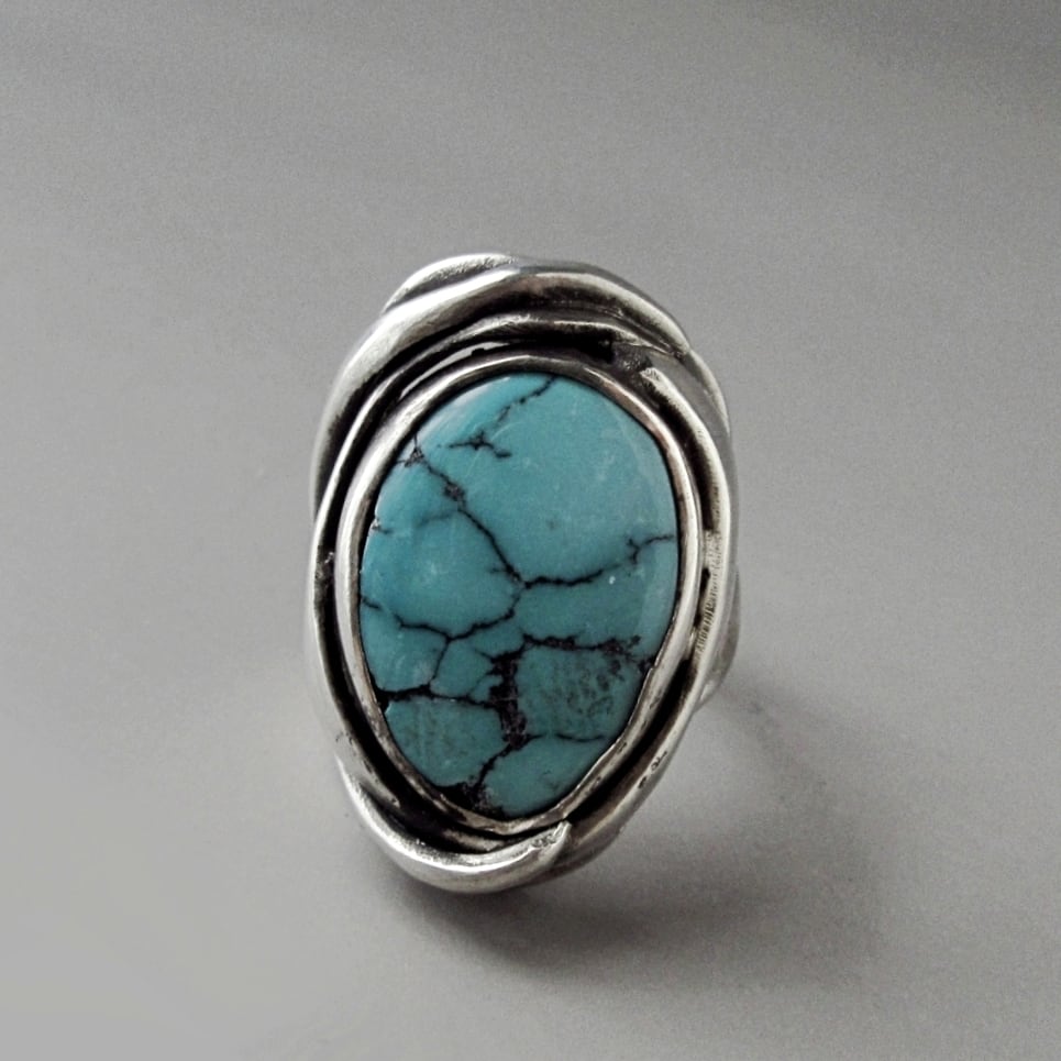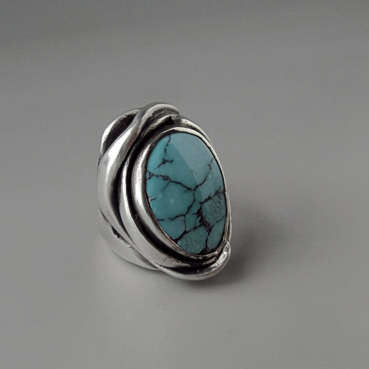 淡い色合いのターコイズとグレーの風合いのシルバーで