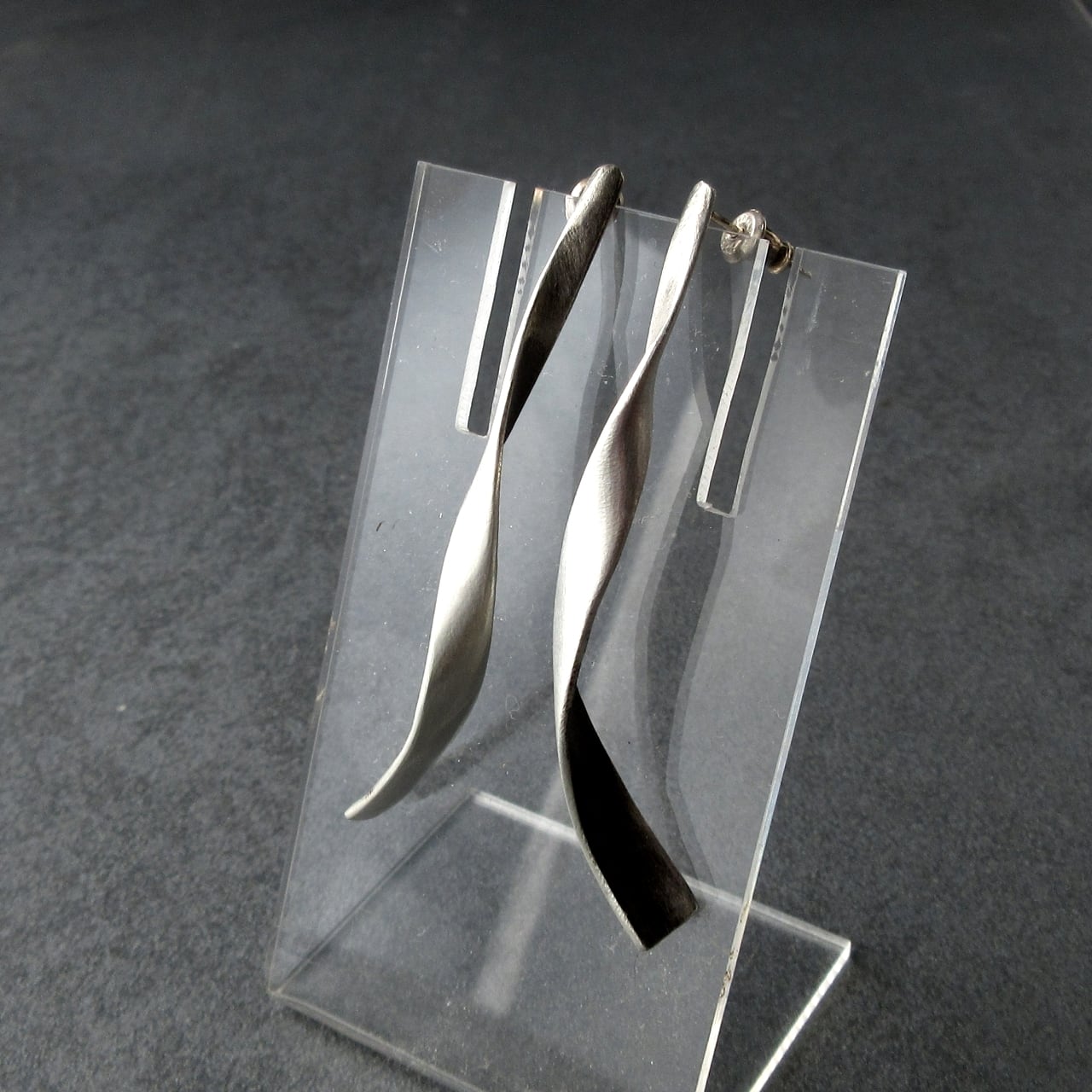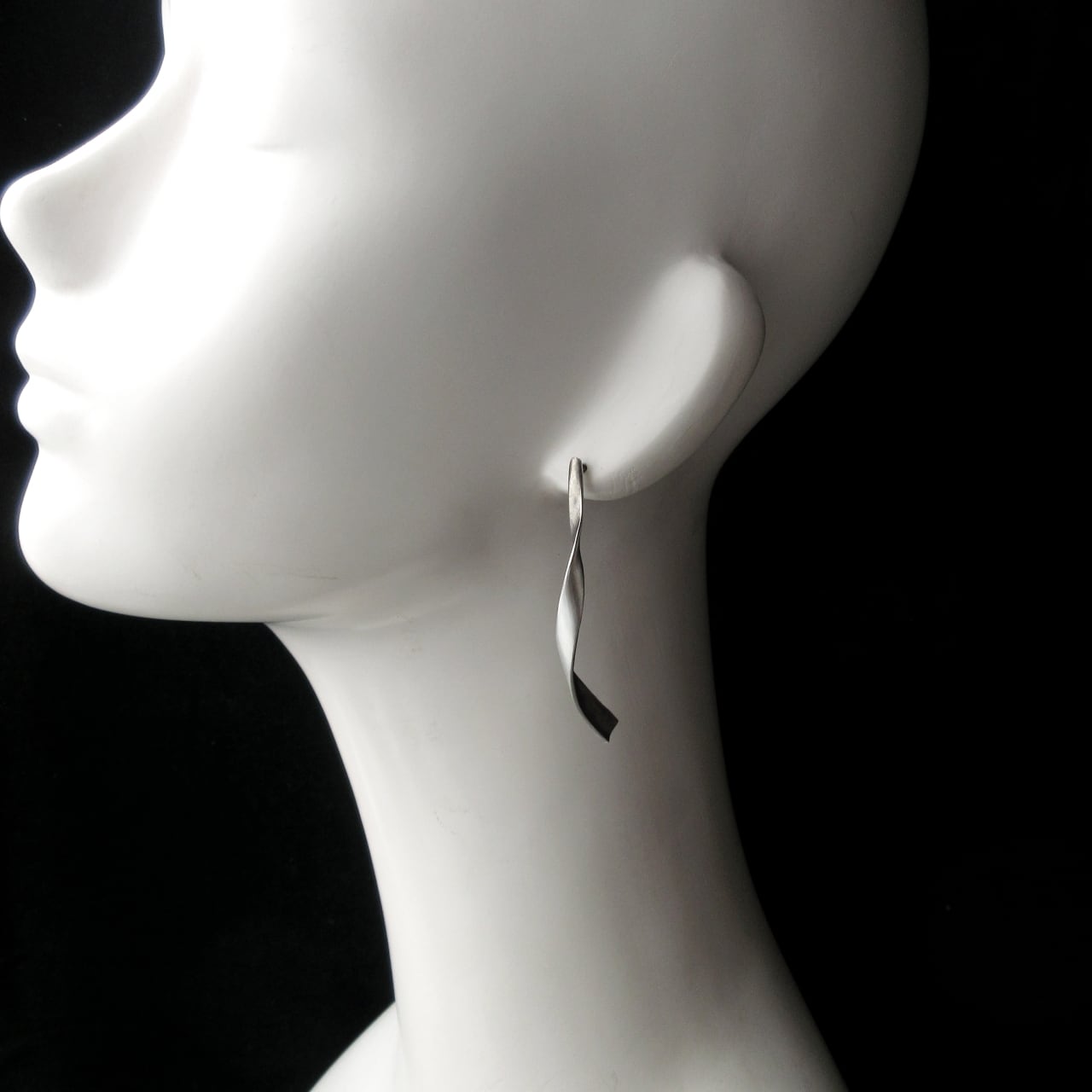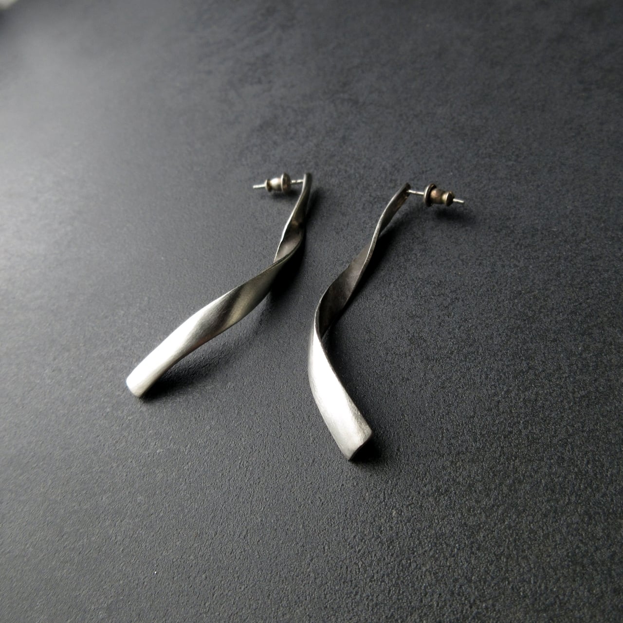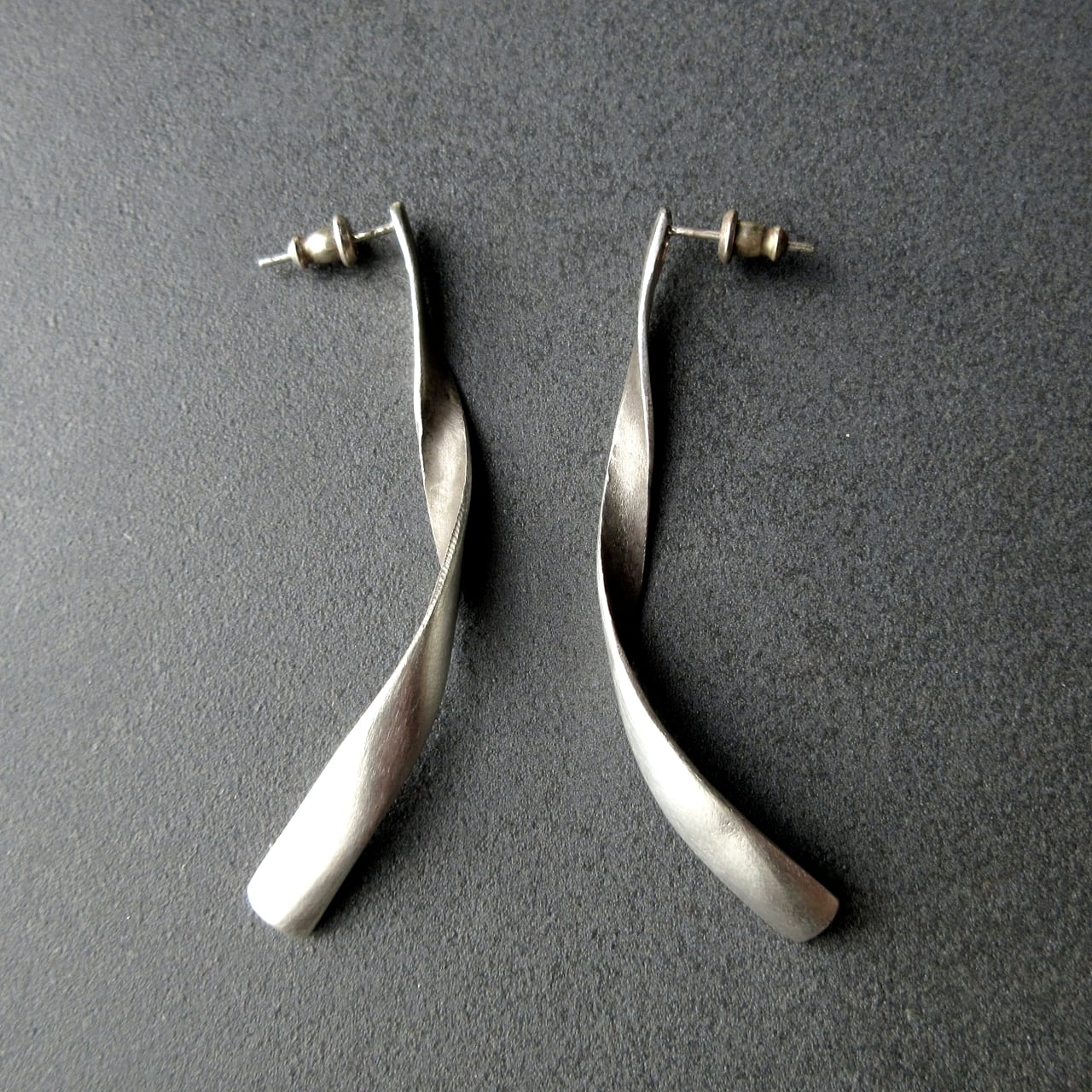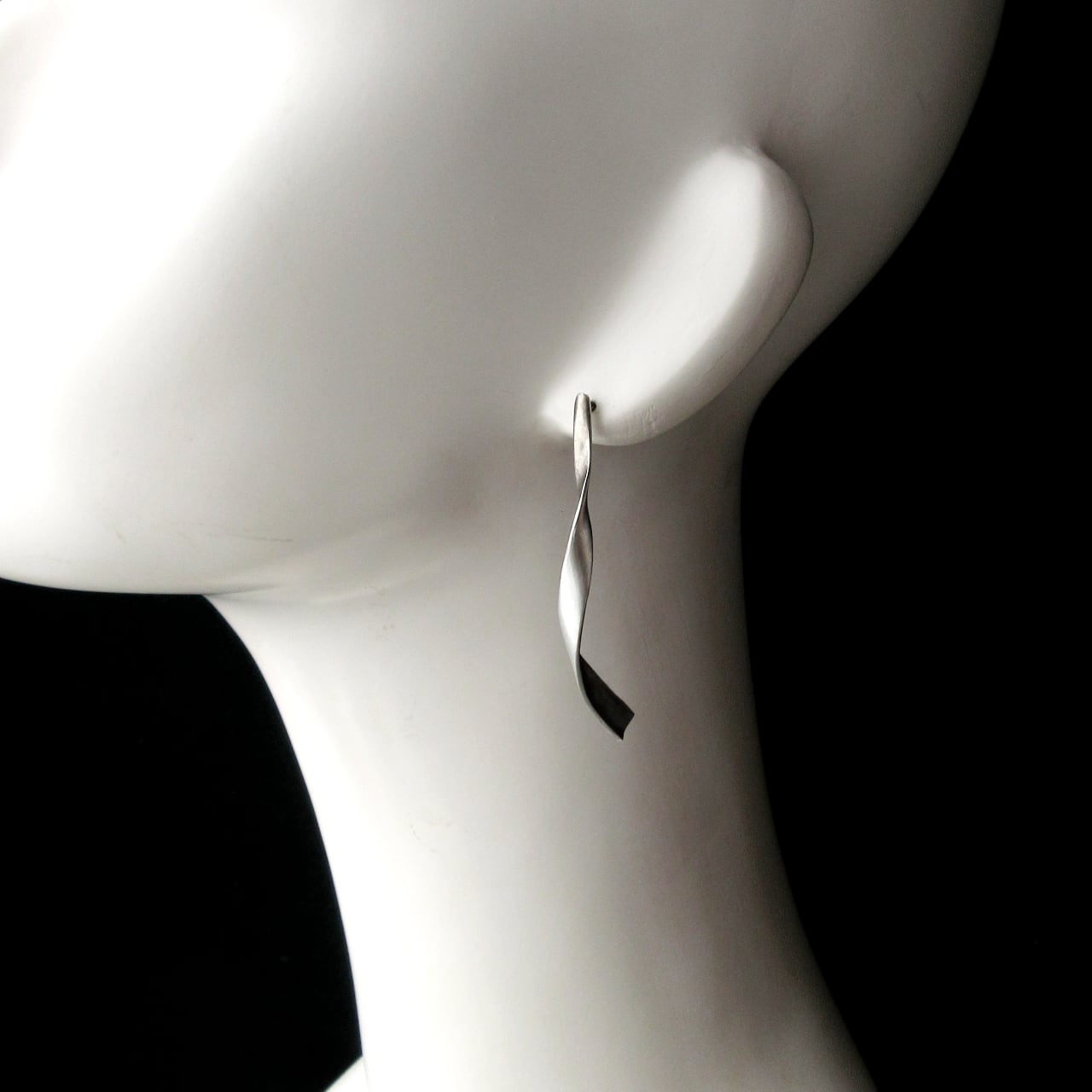 ほんのりと燻と艶消しにしたロングタイプのシルバーピアスです。