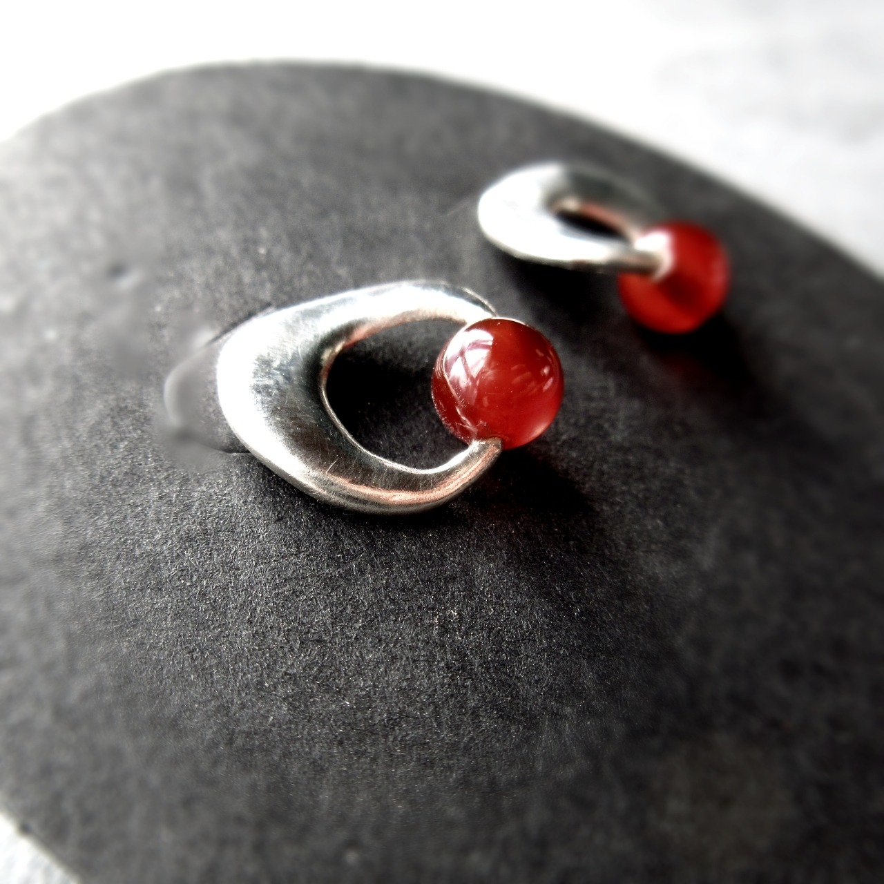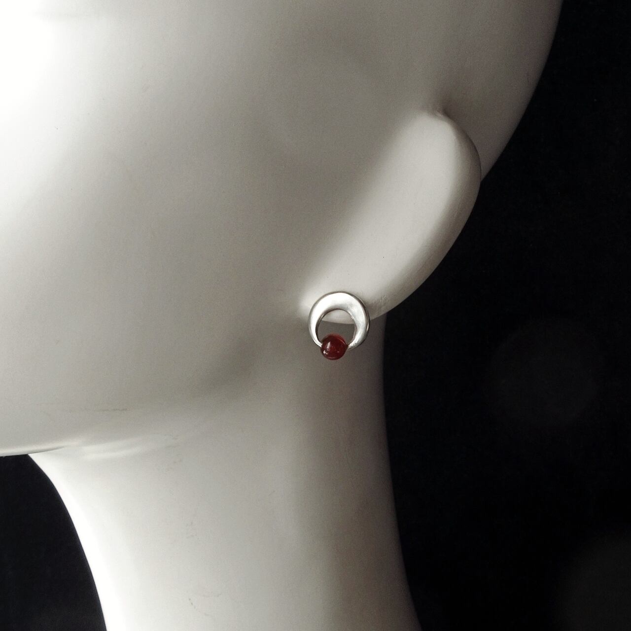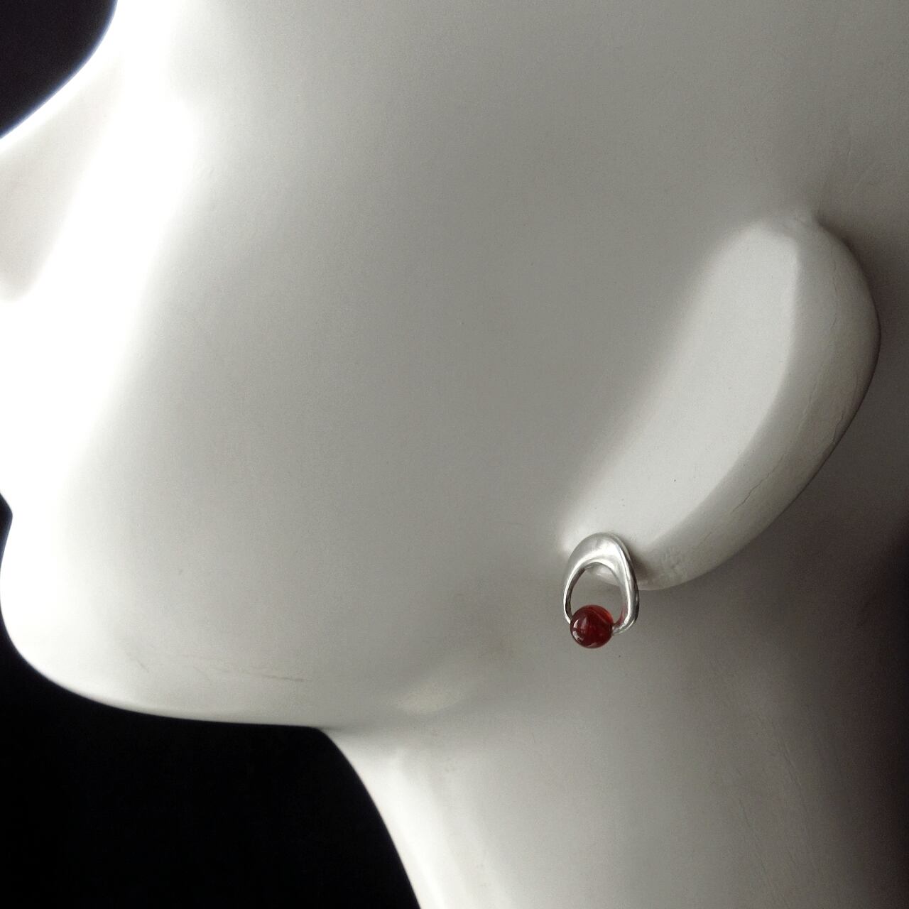 小さな赤・メノウのシルバーピアス