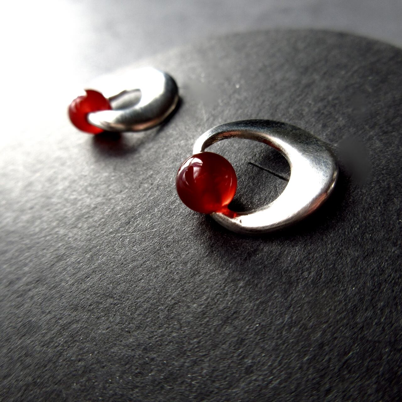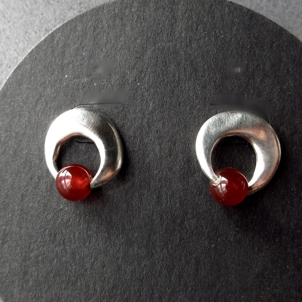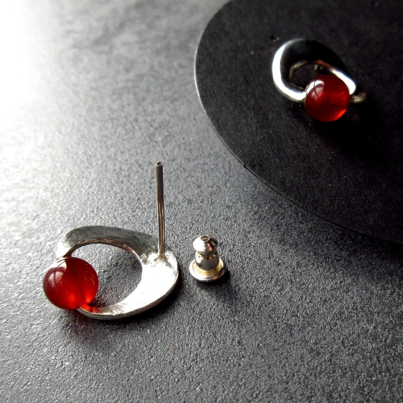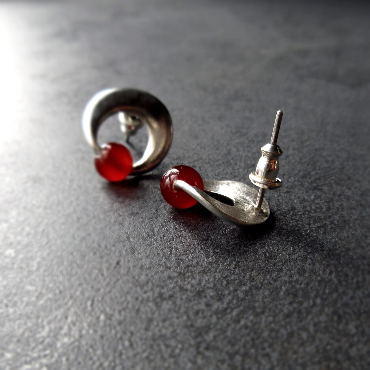 小さな赤・メノウのシルバーピアス