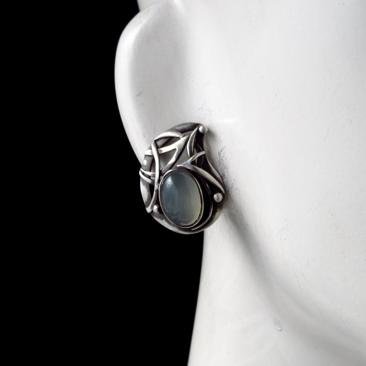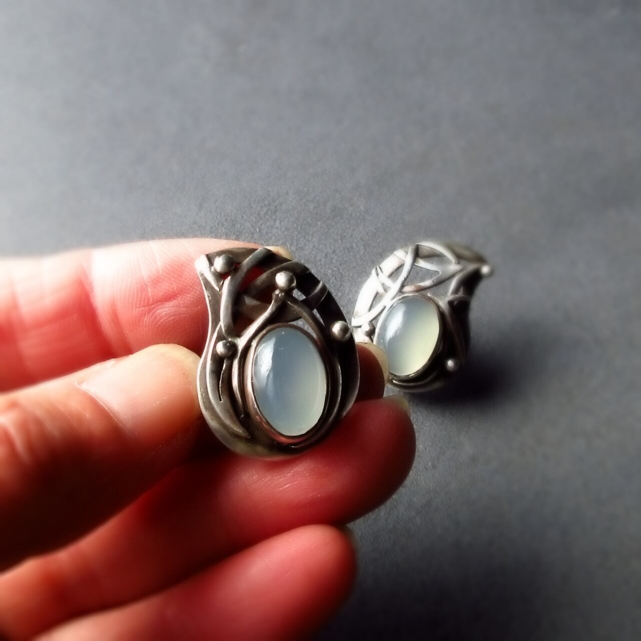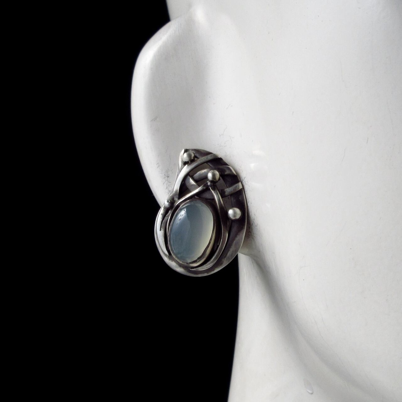 とろりとしたグレー系の色合いをしたカルセドニーのシルバーイヤリングです。