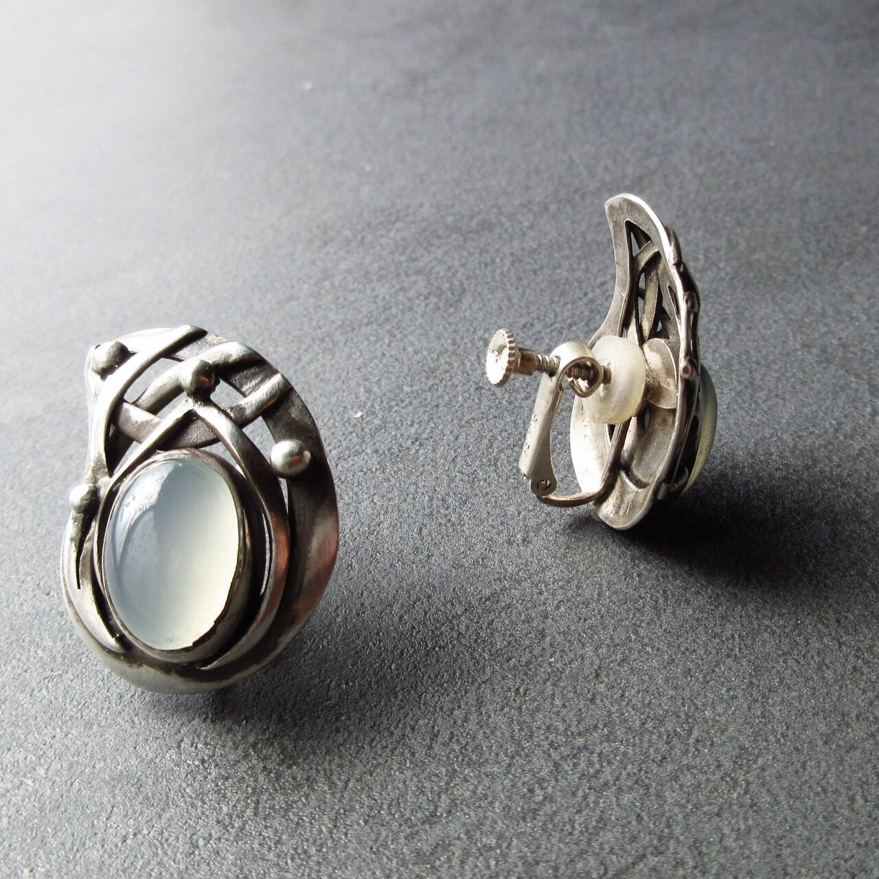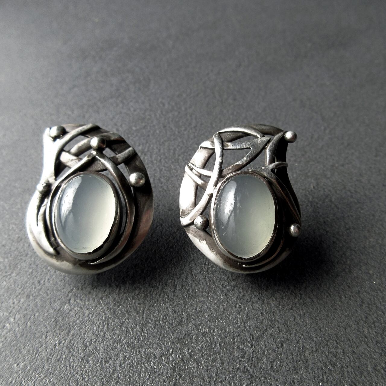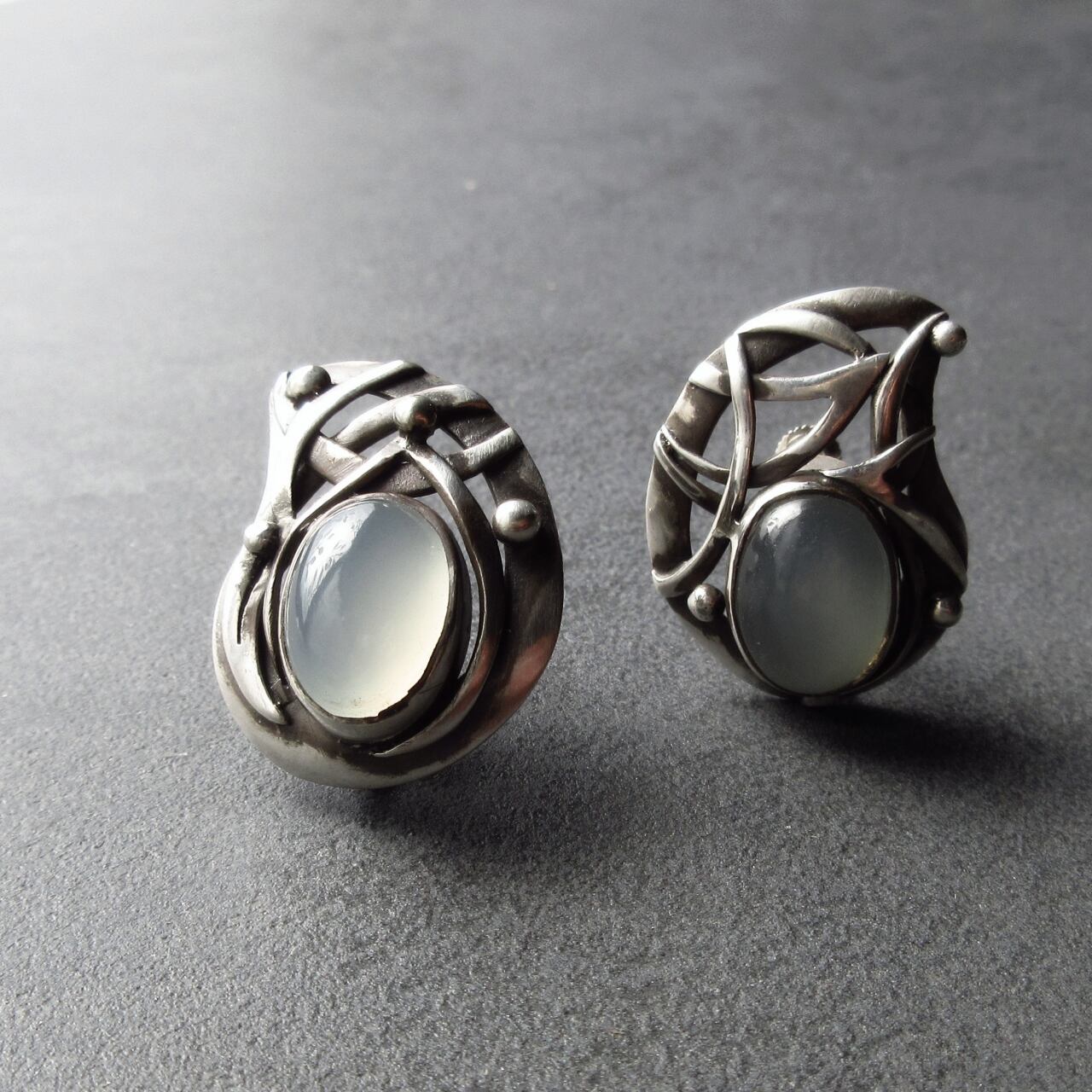 とろりとしたグレー系の色合いをしたカルセドニーのシルバーイヤリングです。
