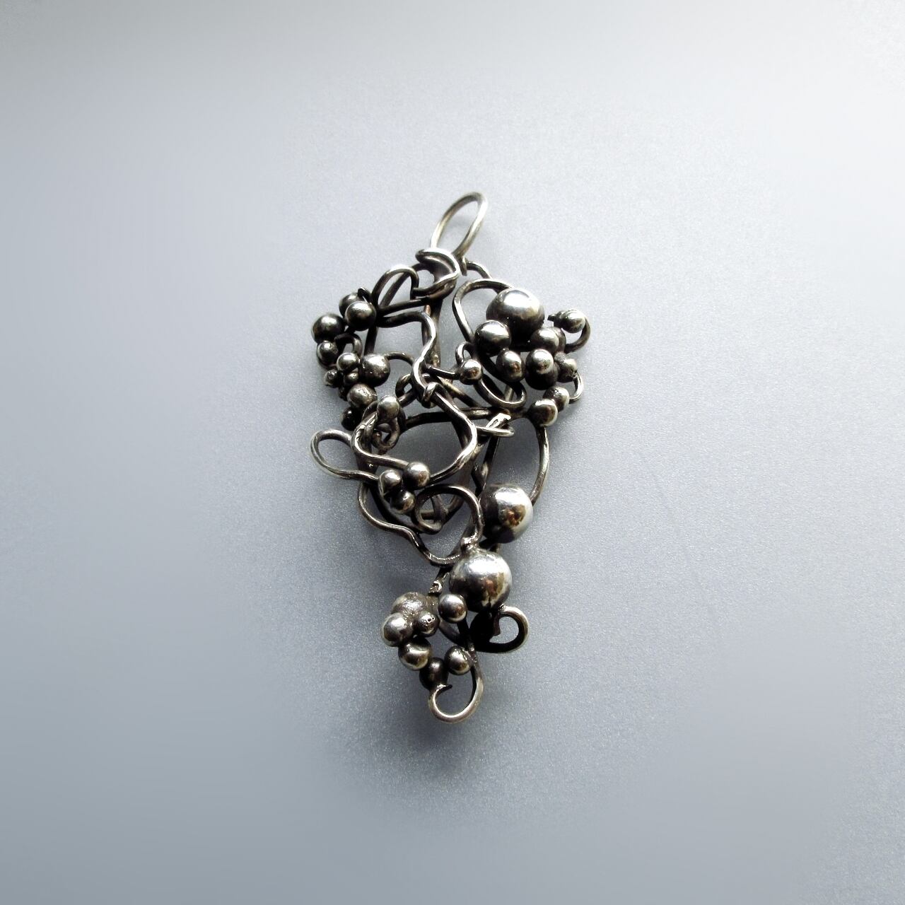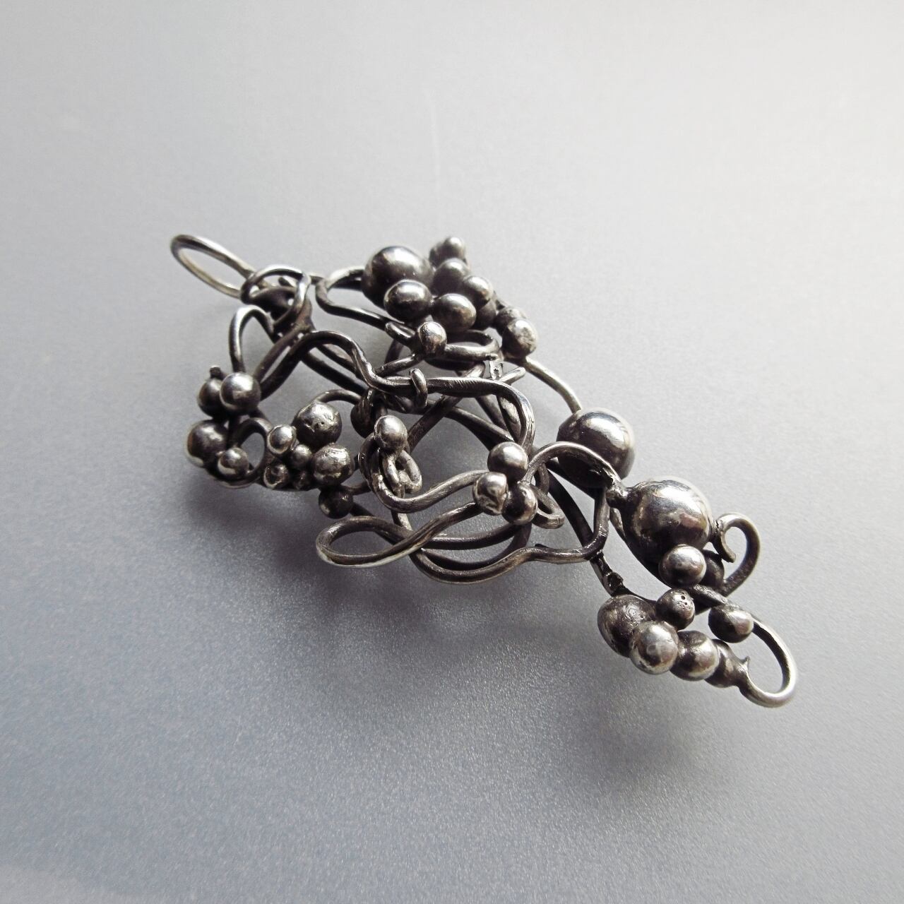 一枚の銀板を切って叩いて組み立てていく一点ものの彫金ジュエリーです。