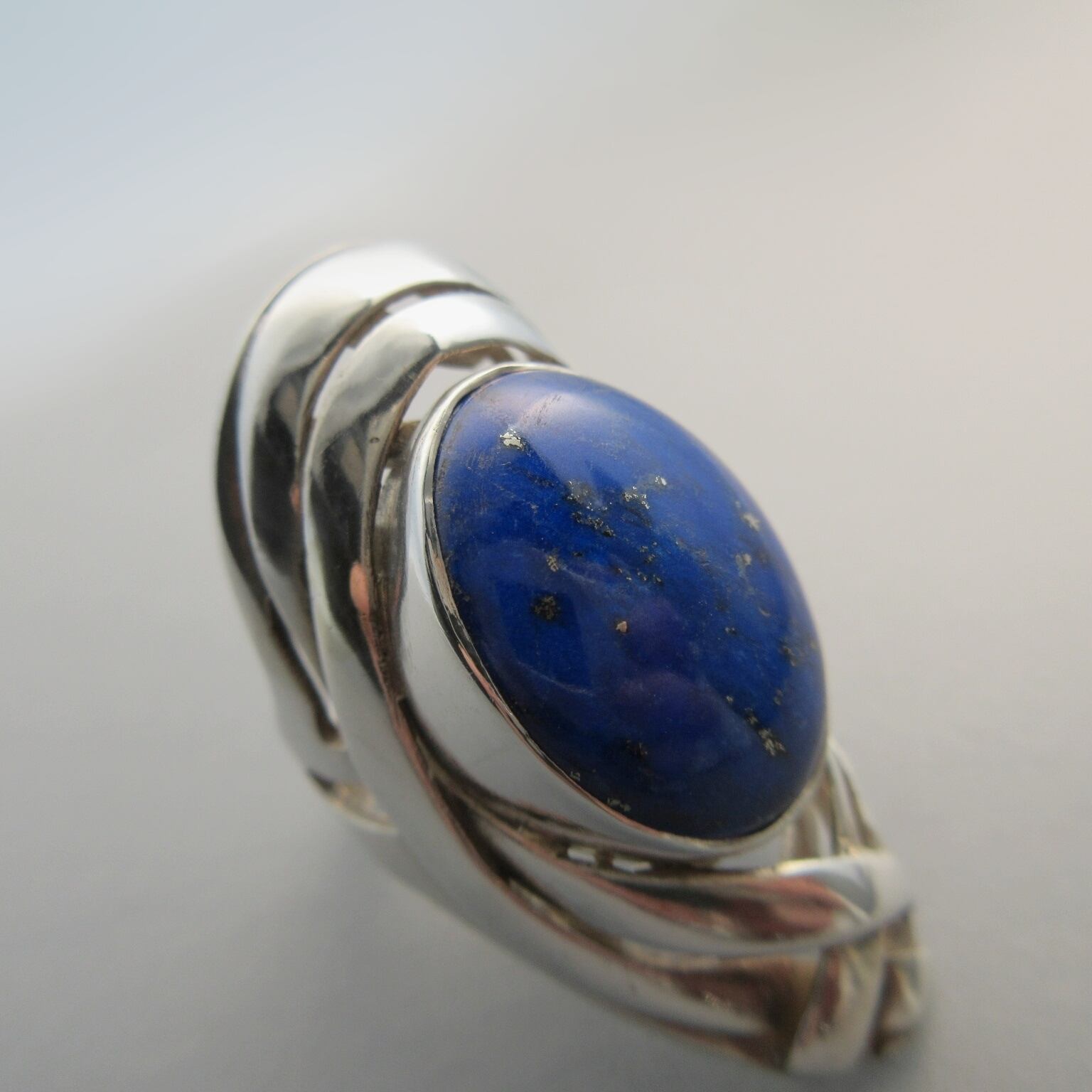 シックな色合いのラピスラズリを使った幅広のシルバーリングです。