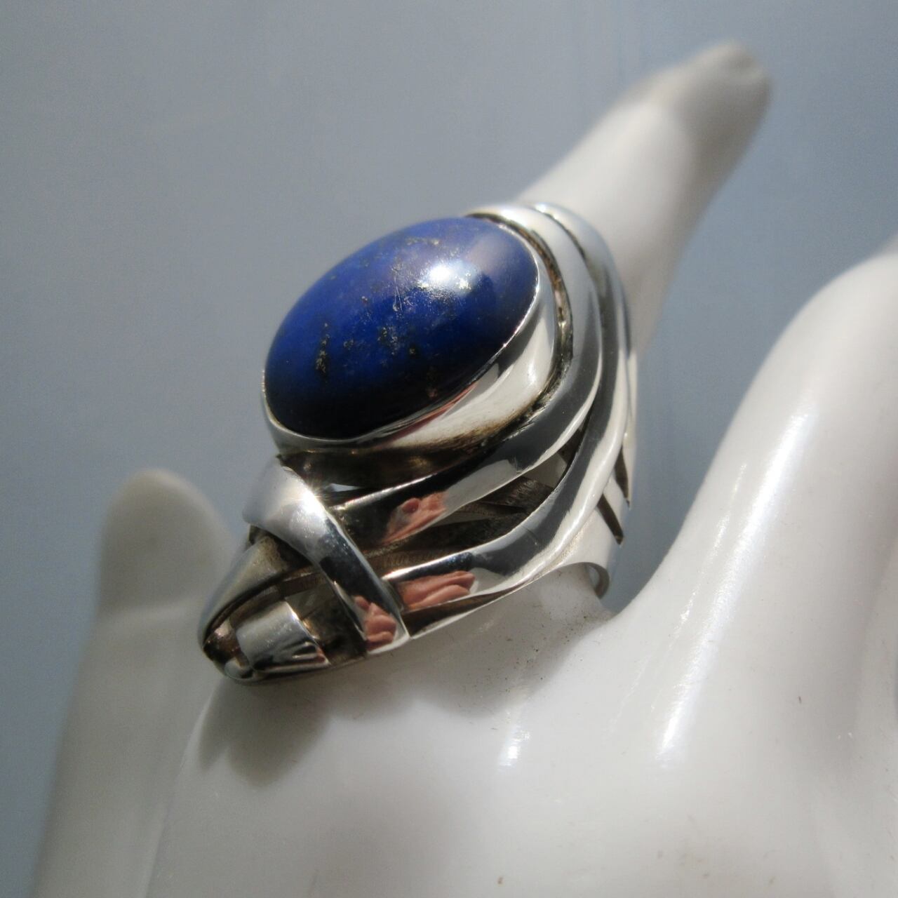 「天空の」大ぶりで印象的・上品な青色のラピスラズリ・シルバーリング