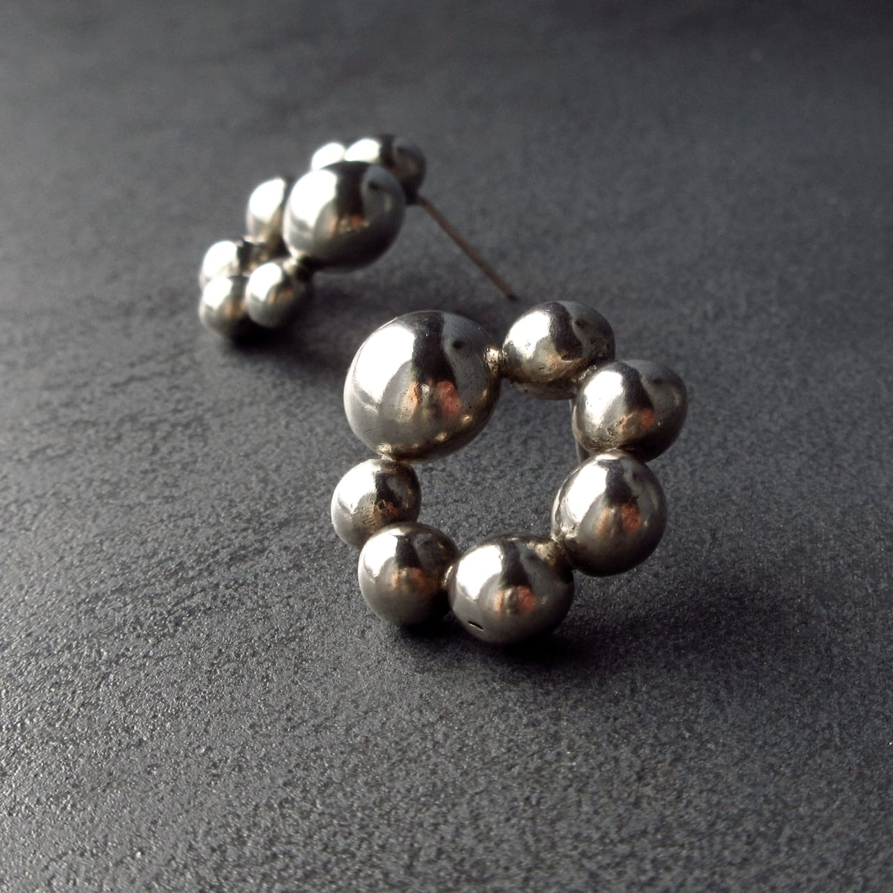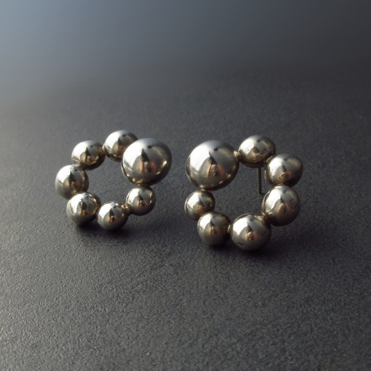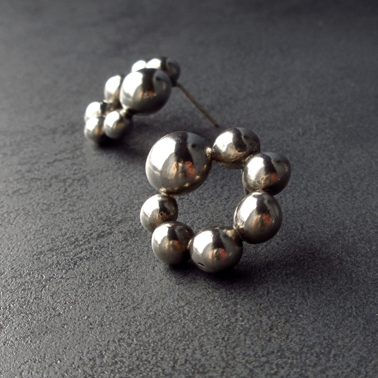 遊び心と重厚感を合わせたシルバーピアスです。