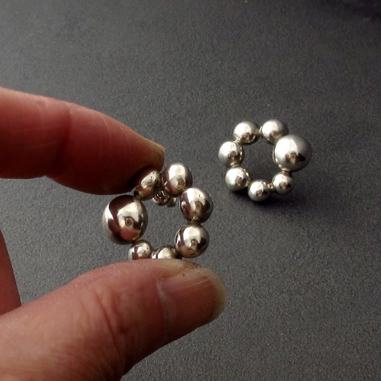 繋がりをイメージしたシルバーピアス