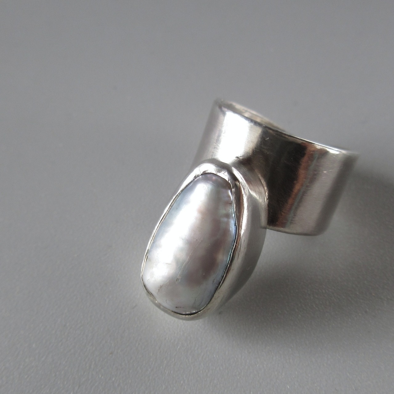 ホワイトグレーのバロックパールを使ったシルバーリング。