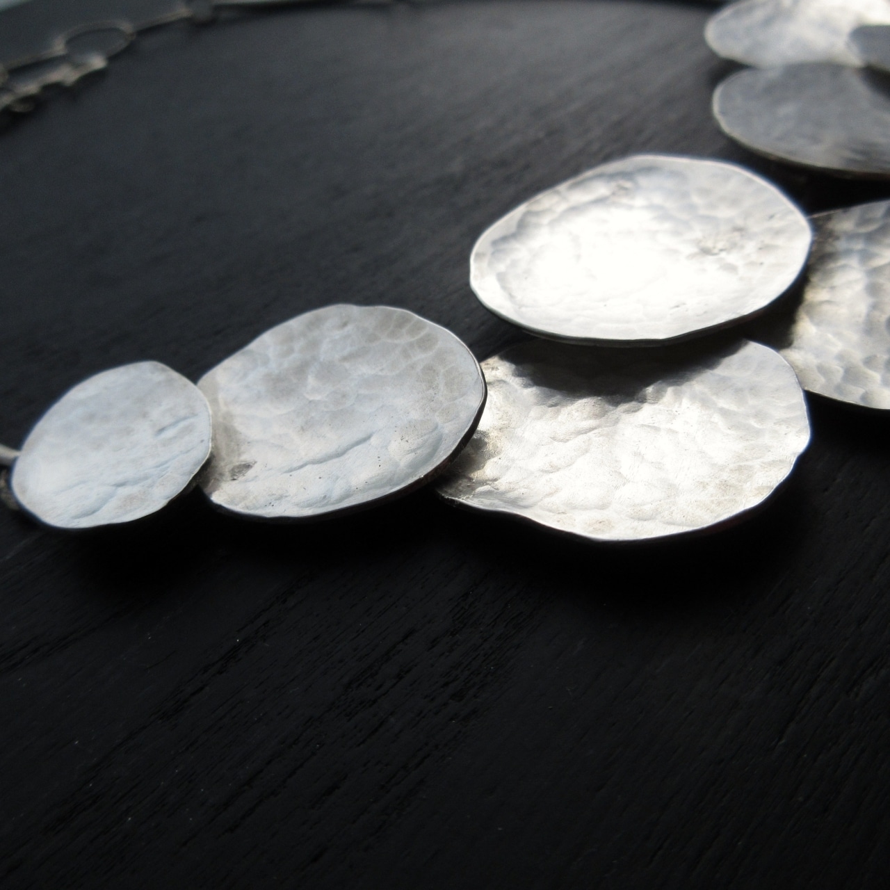 玉砂利の雰囲気を作るためフリーハンドの丸い形に槌目を施しました。
