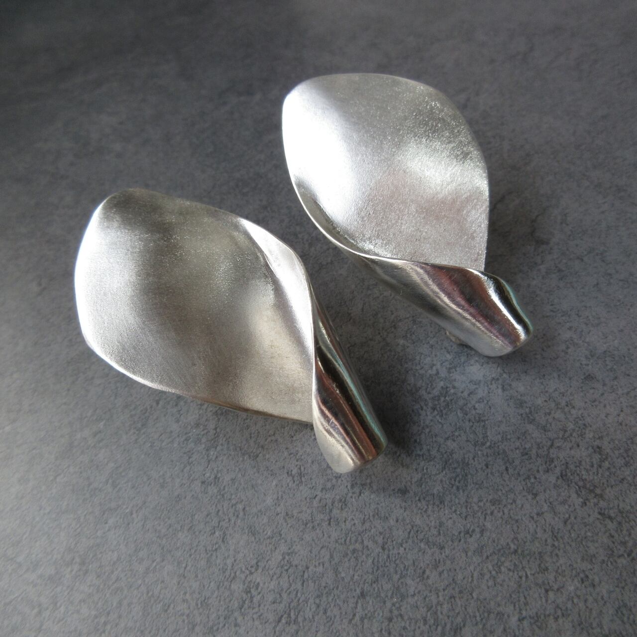 光と艶消しが対照的・大ぶりシルバーイヤリング