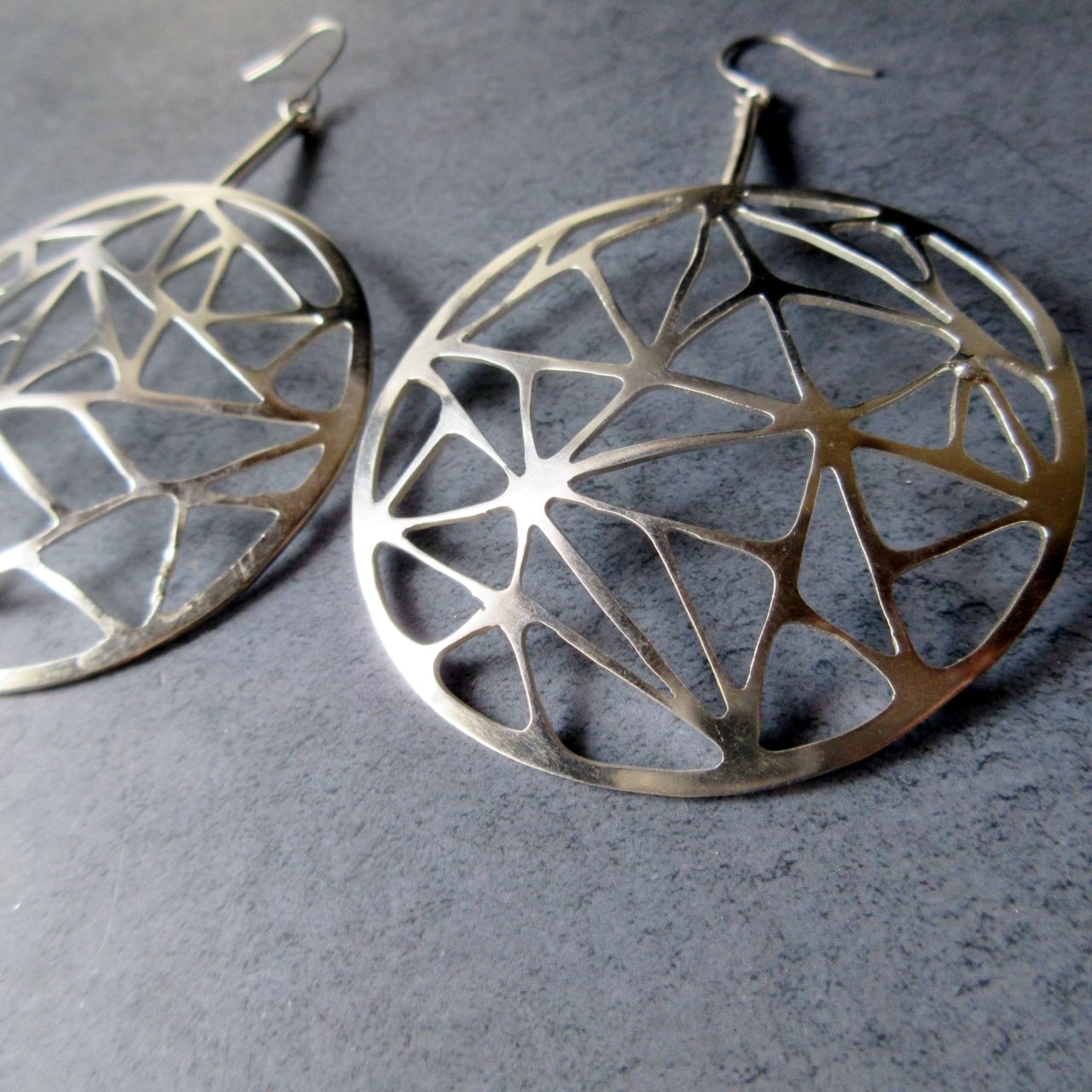 透かし模様の大ぶりなシルバーピアス(イヤリングに変更できます)